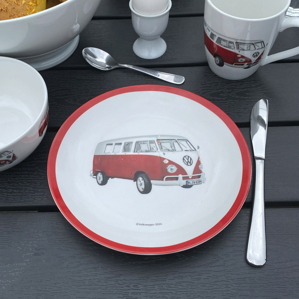 Het VW Classic rode bord 20,3 cm is gemaakt van porselein en is een musthave voor alle fans van de iconische Bulli.