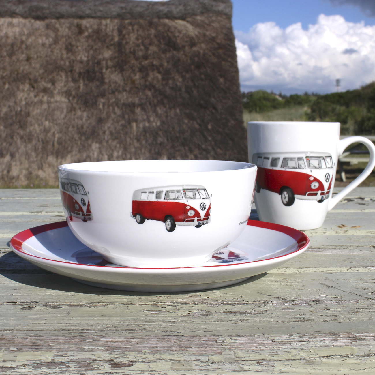 De VW Classic rode ontbijtkom met het iconische zijaanzicht van de T1 laat niet alleen de harten van VW-fans sneller kloppen. De kom is gemaakt van keramiek en biedt met een inhoud van 500 ml voldoende ruimte voor je favoriete muesli in de ochtend. Het motief met het schattige rode busje wordt in de volksmond ook wel de “Bulli” genoemd vanwege zijn opvallende uiterlijk. Je kunt er snacks in serveren of je soep of pap snel opwarmen in de magnetron. De liefdevol ontworpen schaal met het zijaanzicht van de T1 is het perfecte cadeau voor VW-fans en een origineel VW Volkswagen-gelicentieerd product.