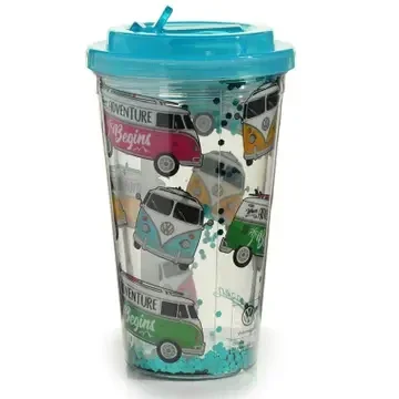 Breukvrije VW T1 Camper Bus Surf dubbelwandige beker en rietje