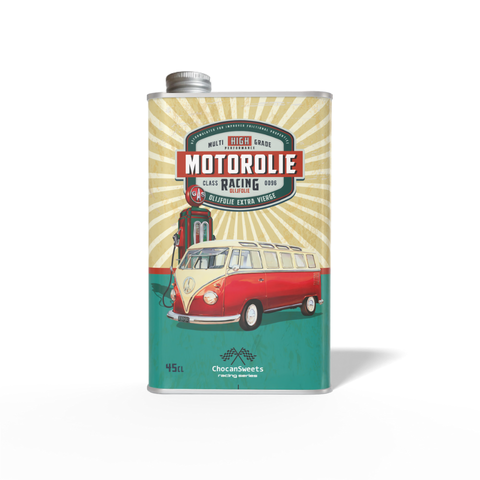 Maak kennis met deze heerlijke olijfolie, verpakt in een Blik met een prachtig retro design. Ideaal voor het verrijken van uw salades of als een stijlvolle toevoeging aan elke keuken. Dit is een must-have voor elke culinaire liefhebber met een passie voor racen.