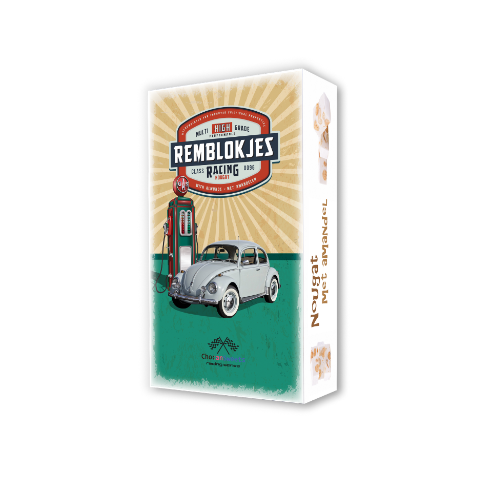 Ontdek deze smakelijke nougat blokjes, gepresenteerd in een feestelijke verpakking met een uniek race design. Deze zoete lekkernij is perfect om te delen of om uzelf te verwennen na een lange dag. Een heerlijke toevoeging aan elke cadeau set.